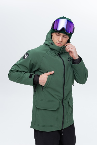 Сноубордическая куртка Ranger в глубоком зелёном цвете Lost Island — для тех, кто не ищет лёгких путей. Она создана, чтобы выдерживать — ветра, снег, обледенелые трассы и суровые спуски. Эта модель сочетает уверенный стиль милитари с продуманной защитой от ветра, влаги и холода: мембрана Softshell 10.000/10.000, прочный полиэстер и конструкция, продуманная до мелочей.